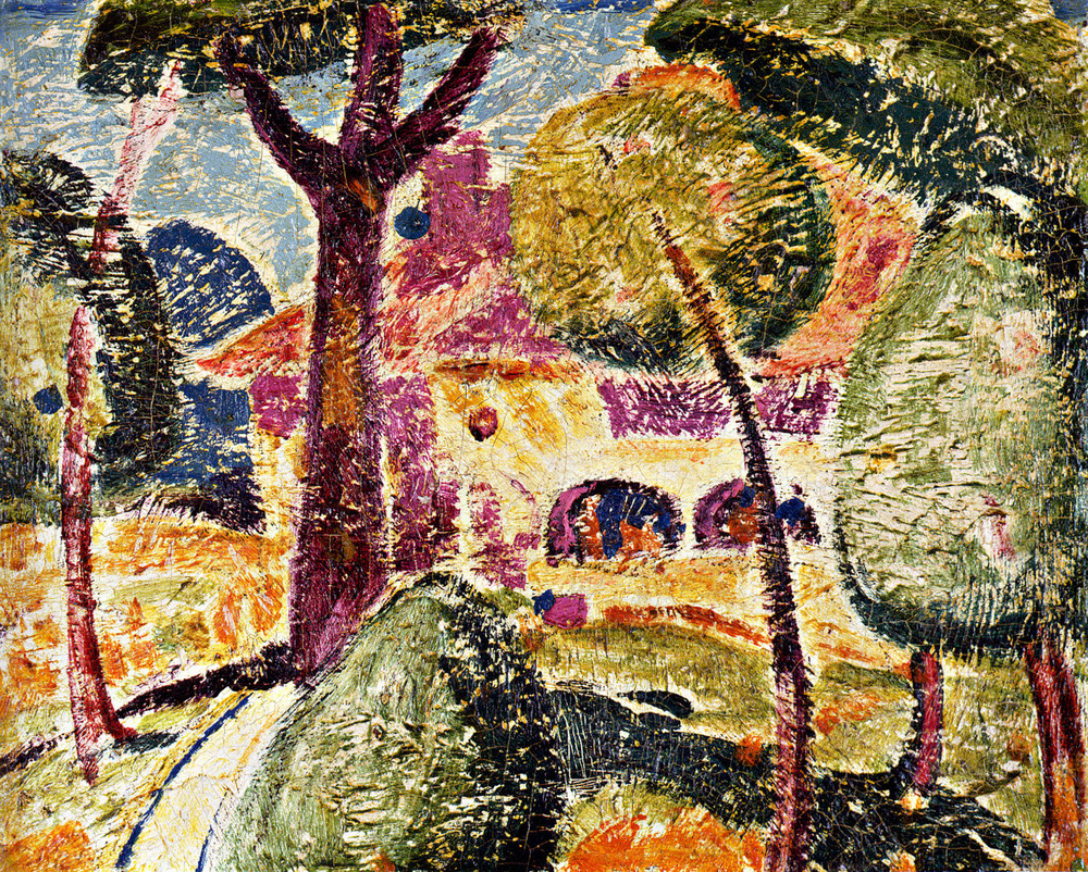 Dove is one of the leading American modernists of the early years of the 20th Century, whose work has come to be admired for its quite distinctive kind of organic abstraction rooted in natural forms. This Landscape was done during his early and impactful visit to France where, along with other young Americans searching for inspiration among the European progressives, he produced some of the most original American fauvist images, such as this small but brilliantly colorful and potent example. Dove and his good friend and fellow American Alfred Maurer were part of the influential circle around Gertrude and Leo Stein in Paris, and together with Maurer Dove traveled in the French countryside where they frequently painted side by side. With its Matisse-like high-keyed palette, this Landscape was innovative for any American painter at that time. For many years it was part of the legendary collection formed over many years by music-industry titan Tommy LiPuma, and has been featured in the landmark exhibition The Advent of Modernism: Post-Impressionism and North American Art, 1900 – 1918, organized by the High Museum in Atlanta, as well as in Modern American Masters: Highlights from the Gil and Tommy LiPuma Collection at the Cleveland Museum of Art.